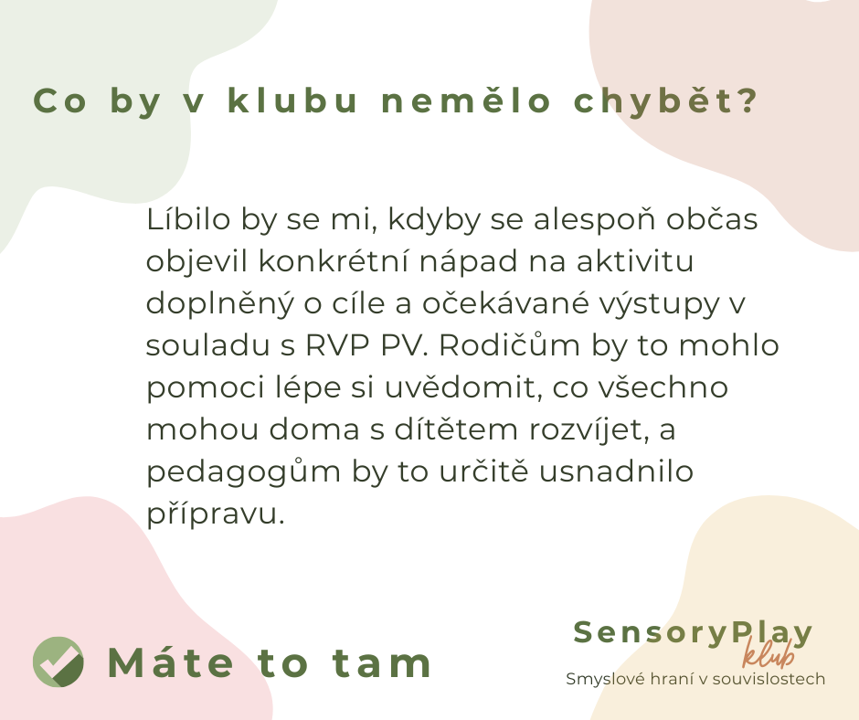 - hledáš smyslové aktivity, ale nevíš, co dítě při nich skutečně rozvíjí